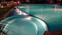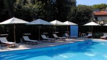 Piscina con idromassaggio, e attrezzata con ombrelloni e lettini